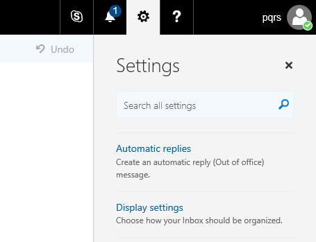 3. Go to the Settings in the right corner of the outlook, Mail >settings.
